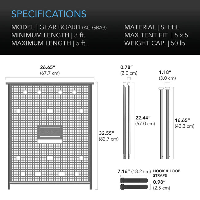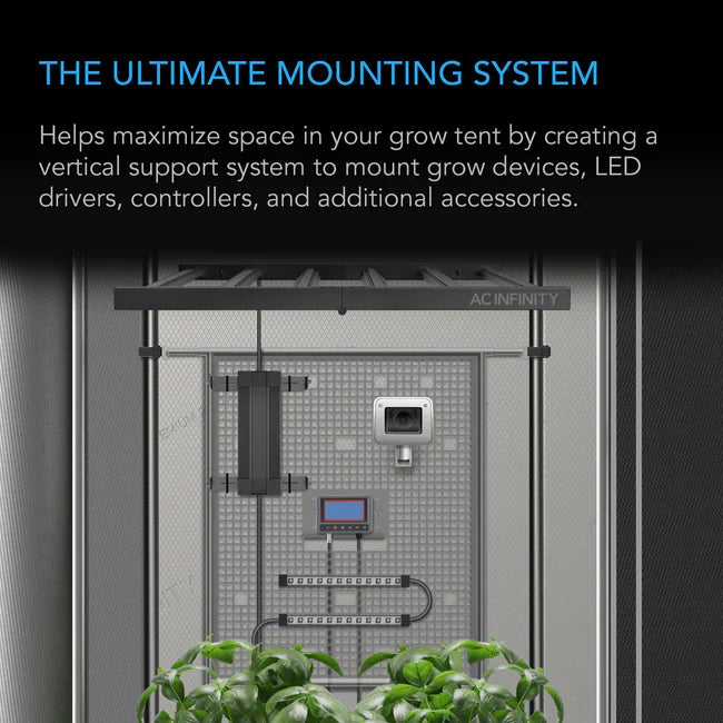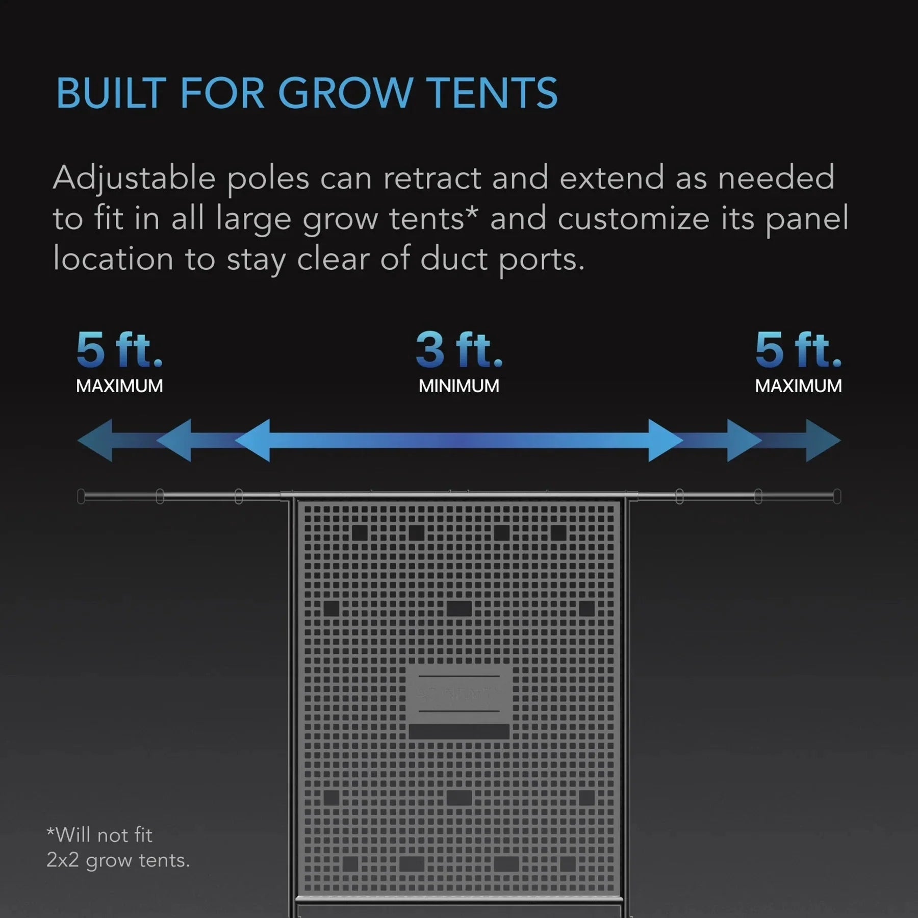 Maximieren Sie den Platz in Ihrem Growzelt mit diesem strapazierfähigen Geräteboard, das für die sichere Befestigung von Zubehör wie Steuerungen, LED-Treibern und Werkzeugen entwickelt wurde. Der stabile, pulverbeschichtete Stahlrahmen trägt bis zu 22,7 kg und hält hohen Temperaturen sowie Feuchtigkeit stand. Die verstellbaren Stangen lassen sich von 91 bis 152 cm ausziehen und passen so auf Zelte bis zu 150 x 150 cm, ohne Lüftungsöffnungen zu blockieren. Das breite Maschendesign ermöglicht ein effizientes Kabelmanagement und sorgt für einen aufgeräumten Arbeitsplatz. Einfache Installation durch mehrere Befestigungsoptionen, darunter Magnetrückseite, Schrauben, Kabelbinder und Haken.