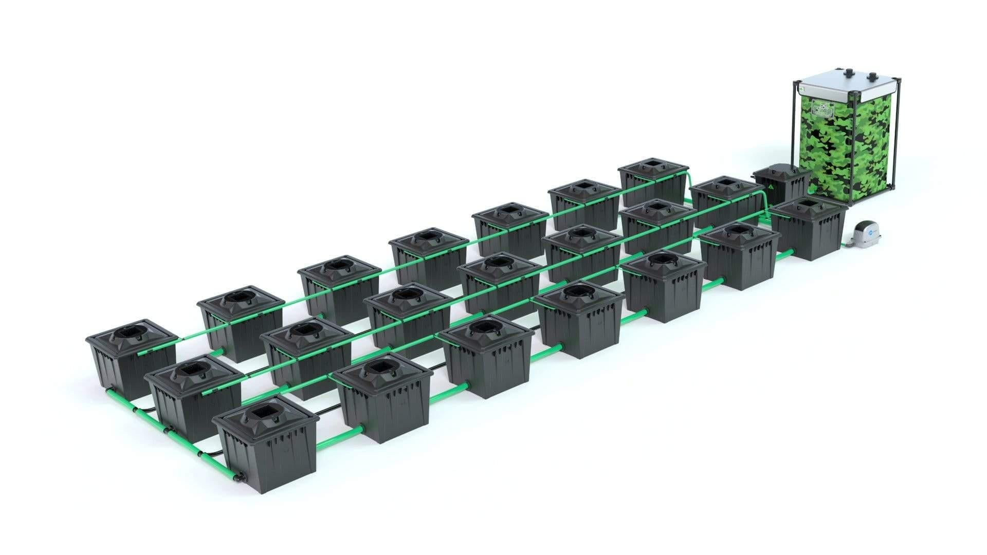 Maximale Stellfläche: Länge: 5,25 m Breite: 1,9 m (mit der mitgelieferten Schlauchmenge und 75 cm Pflanzenabstand) Systemvolumen: 550L