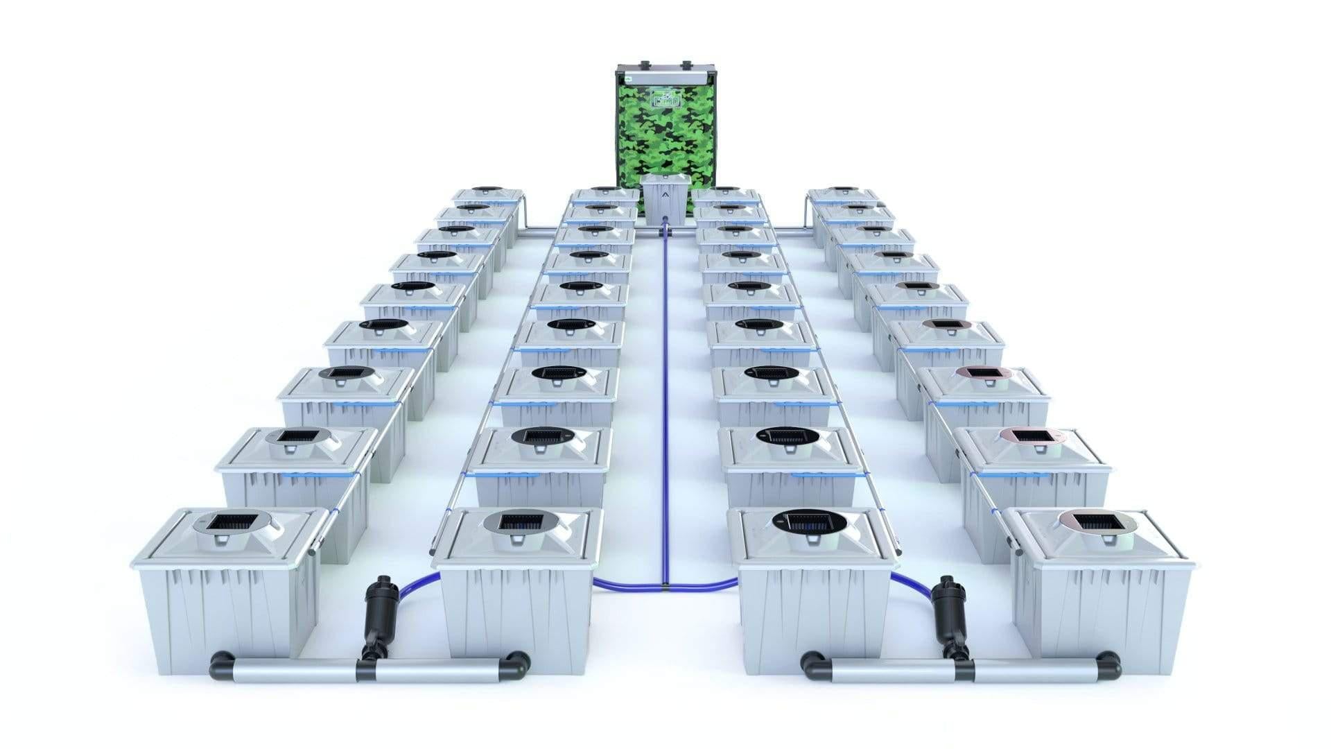 Mindestaufstellfläche: Länge: 4,5 m Breite: 1,8 m (Töpfe so nah wie möglich – ohne Tank)Maximale Aufstellfläche: Länge: 6,75 m Breite: 2,7 m (mit mitgelieferter Rohrlänge) (Pflanzenabstand 75 cm)