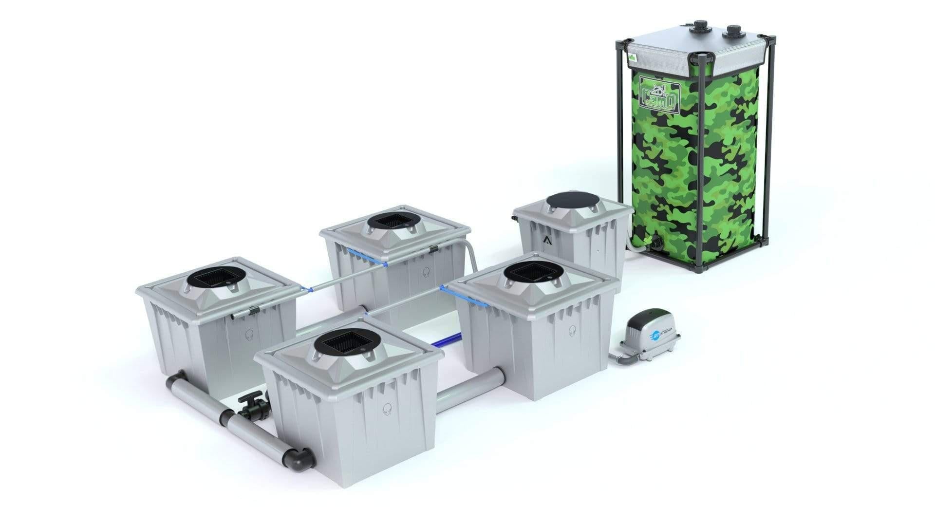 Minimale Stellfläche: Länge: 1,3 m Breite: 0,9 m (Töpfe so nah wie möglich – ohne Tank)Maximale Stellfläche: Länge: 1,55 m Breite: 1,17 m (mit mitgelieferter Rohrmenge) (75 cm Pflanzenabstand)