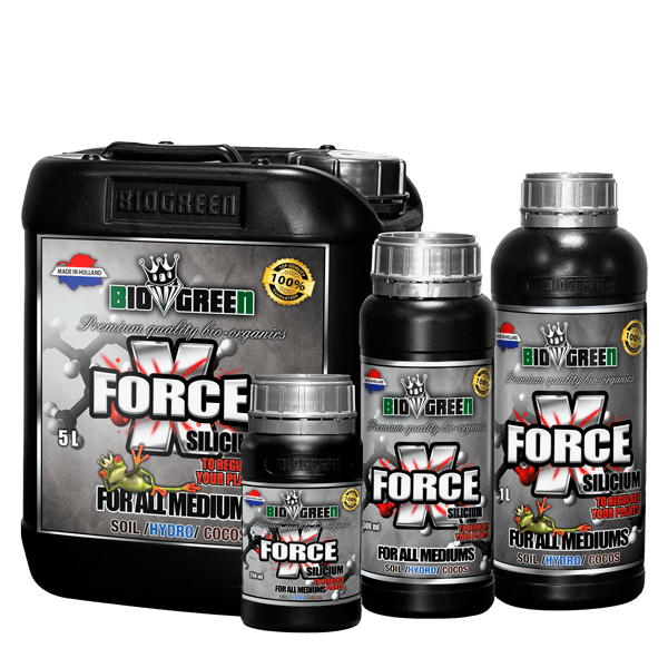 Biogreen X-Force ist ein hochwertiges, hochkonzentriertes Silizium in Monomerform. Das bedeutet, es ist für die Pflanze sofort bioverfügbar und fördert somit unmittelbar die Pflanzengesundheit sowie den Gesamtzuwachs an Biomasse für eine reiche Ernte qualitativ hochwertiger Pflanzen.