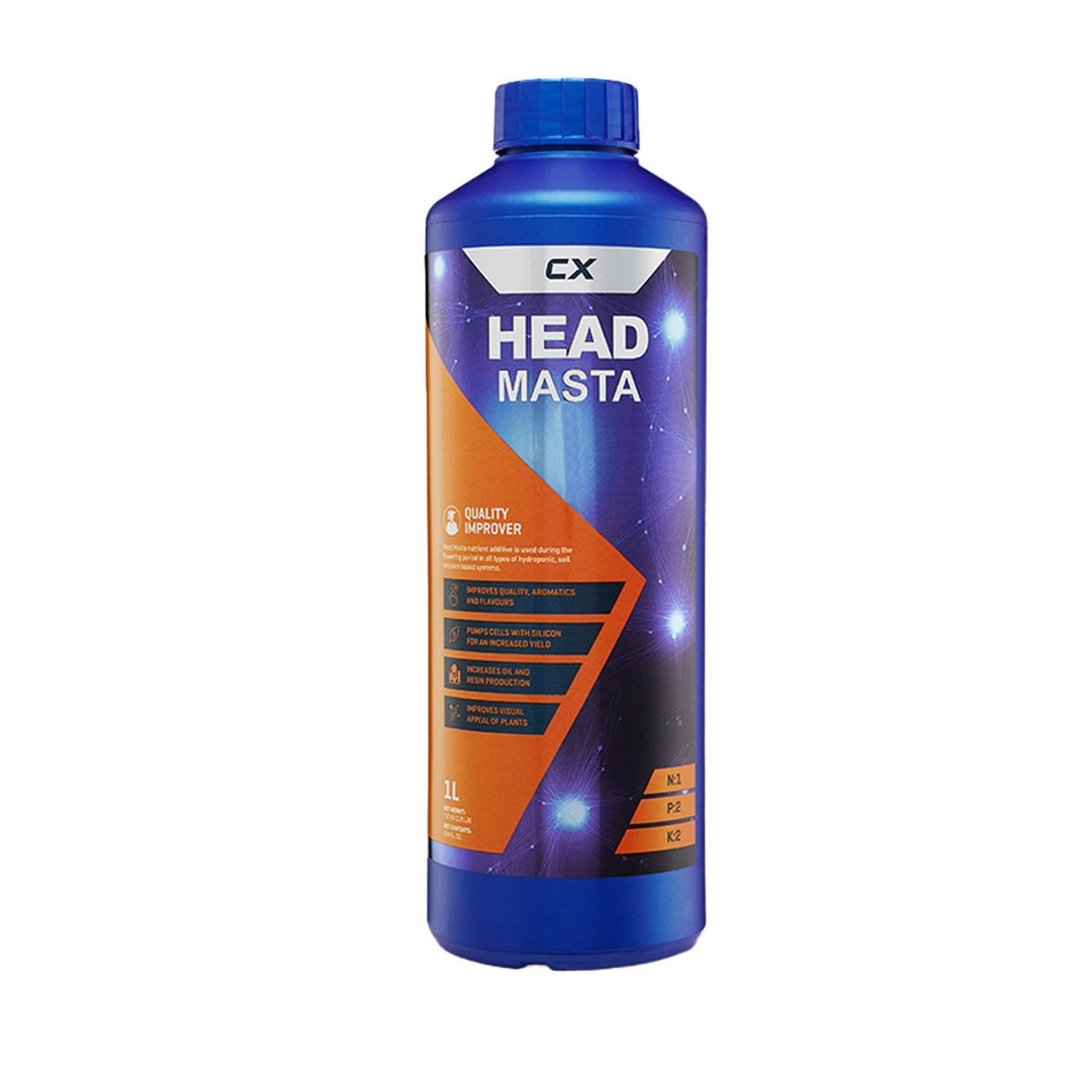 Head Masta verwandelt Ihre Ernte in eine ertragsreiche, qualitativ hochwertige Superpflanze. Head Masta wirkt auf vielfältige Weise, um sowohl den Ertrag als auch die Qualität zu steigern. Erstens simuliert es ein internes pflanzenhormonelles Signal, das die Bildung zusätzlicher Blüten sowie weiterer Blütenstellen anregt. Zweitens füllt es die Pflanzenzellen mit zusätzlichen Vitaminen und Mineralien, die die Pflanze benötigt, um überschüssiges Licht und Nährstoffe in hochwertigste Proteine, Aminosäuren und Kohlenhydrate umzuwandeln.