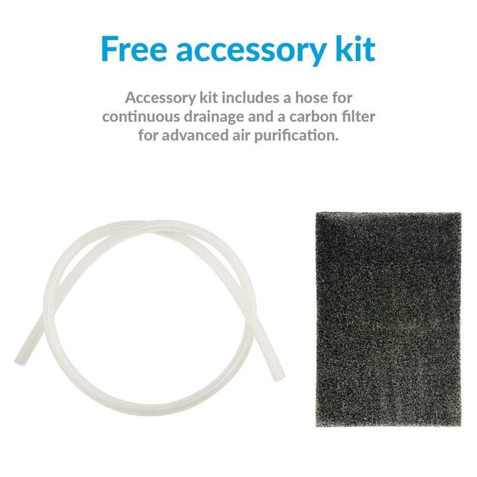 Dank des integrierten Hygrostats können Sie das gewünschte Feuchtigkeitsniveau einstellen und das Gerät schaltet sich bei Bedarf automatisch ein oder aus. Es verfügt außerdem über eine automatische Abschaltfunktion, wenn der Wassertank voll ist, sowie einen Tragegriff, damit Sie es bequem von Raum zu Raum transportieren können.