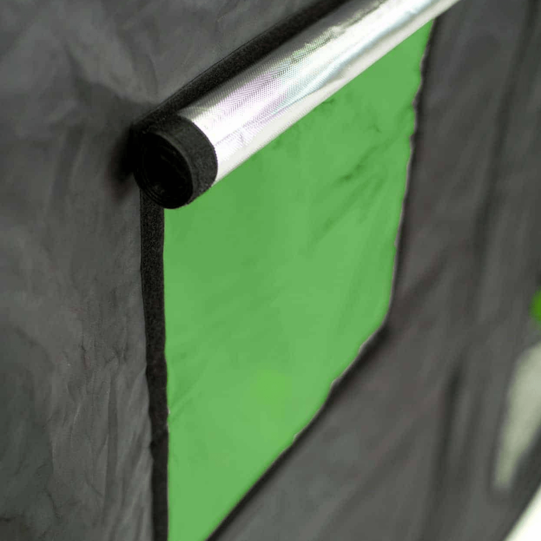 Die Außenhülle besteht zudem aus extra dickem, robustem und ungiftigem PVA-Canvas mit XREFLECT® Diamant-Mylar, das zu 98 % lichtundurchlässig ist. Enthalten sind doppelt gesockelte Kabel, Zu- und Abluftöffnungen, alle mit StitchBLOK® und Tritec®-Schaumstoff-Technologie. Außerdem befinden sich Gummibeschichtungen an allen Reißverschlüssen. Damit sind alle Green-Qube-Growrooms zu 99 % lichtdicht.
