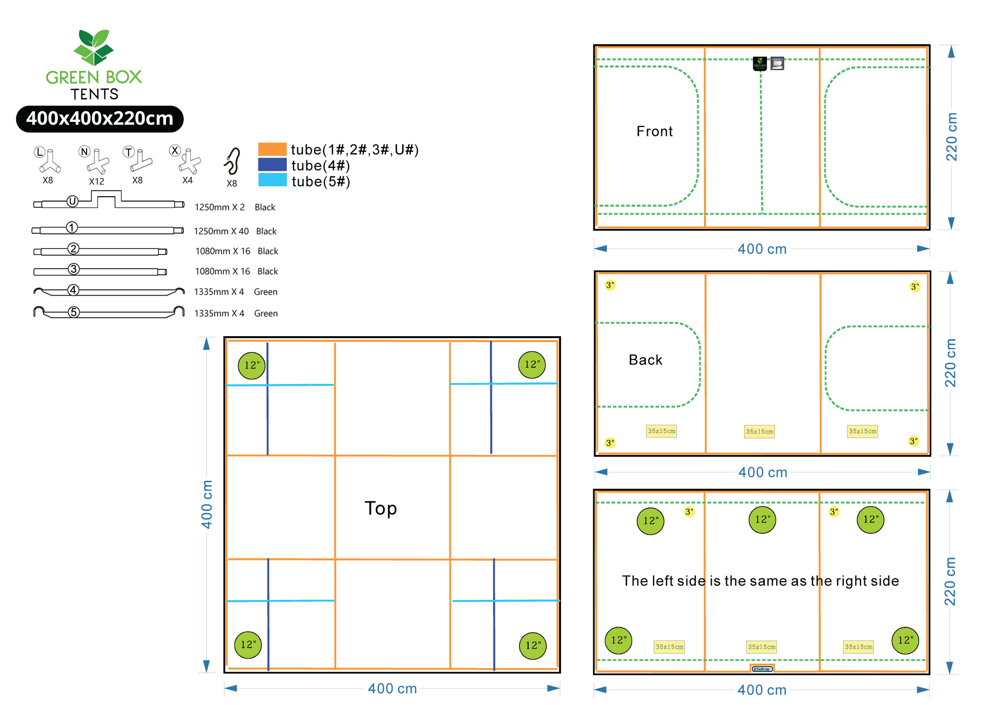 Vollgepackt mit Vorteilen und Funktionen sind diese Zelte äußerst einfach aufzubauen und bieten eine robuste Konstruktion für maximale Stabilität. Das Zelt besteht aus hochwertigen Materialien, darunter 600D Oxford Black Cloth und 620D Diamond Mylar an allen Innenflächen, um die Reflexion zu erhöhen und die Lichtverteilung für Pflanzen zu maximieren. Im gesamten Zelt werden robuste Stahlstangen sowie extra verstärkte Ecken verwendet, um Ausdehnungen und Risse zu verhindern.