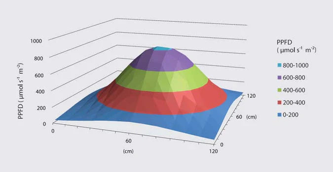 - Geräteeffizienz: 2,5 µmol/J