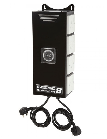 Die Maxiswitch Pro Schaltgeräte werden in Großbritannien aus hochwertigen Komponenten hergestellt, darunter GE-Schütze und Grasslin-Zeitschaltuhren. Die Geräte verfügen außerdem über robuste Kabel und Leitungen, einschließlich 13A geschalteter Steckdosen.