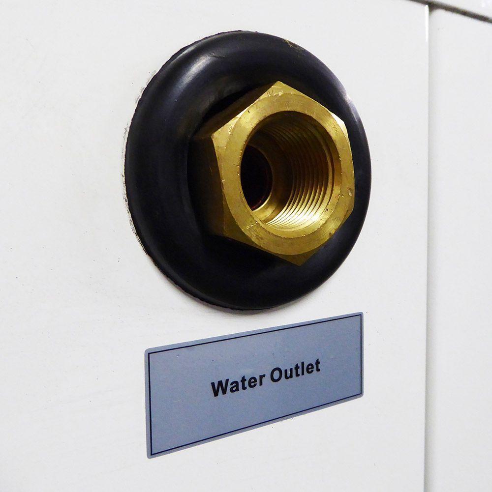 Hinweis: Dies ist die Haupteinheit, die den Raum kühlt. Das nun heiße Wasser (welches die Raumwärme aufgenommen hat) wird abgeleitet, z.B. in einen Abfluss. Falls Sie das heiße Wasser zurück in das System führen möchten, benötigen Sie einen dieser Wasserkühler.